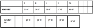 MEN'S CHEST | 31"-34" | 34"-37" | 38"-41" | 42"-45" | 46"-49" |
